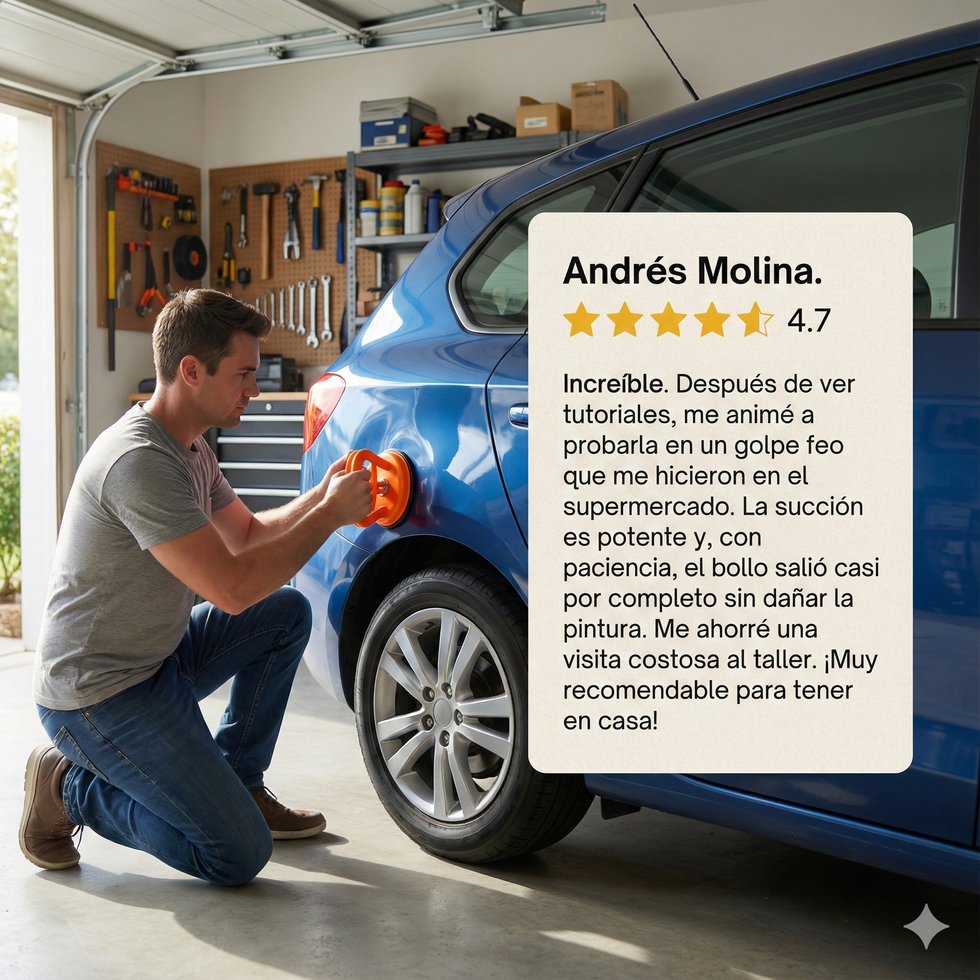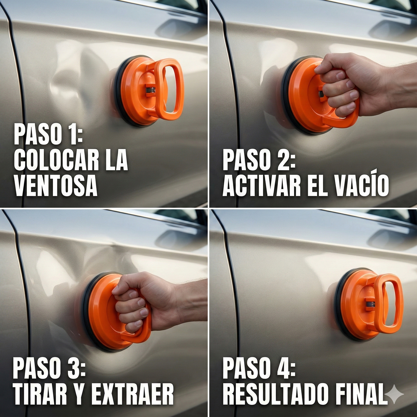 DentSave Pro™ repara abolladuras y golpes desde tu casa muy facil, te ahorra visitas al chapista y mucho dinero, no daña la pintura ni la chapa teniendo resultados rápidos y sin esfuerzo.